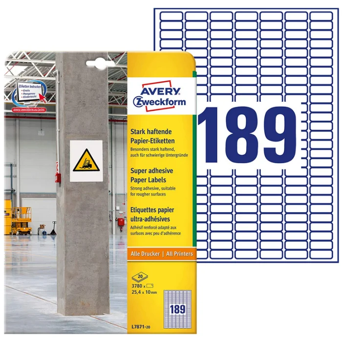 Étiquettes ultra adhésives pour impression - 25,4 x 10 mm - Blanc AVERY Lot de 3780