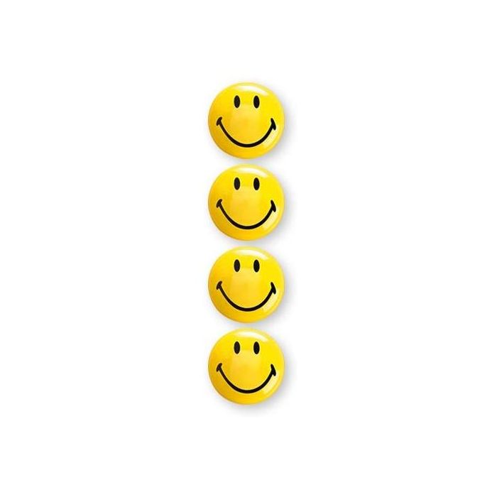 Lot de 4 Aimants SMILEY 40 mm - Jaune et Noir MAGNETOPLAN