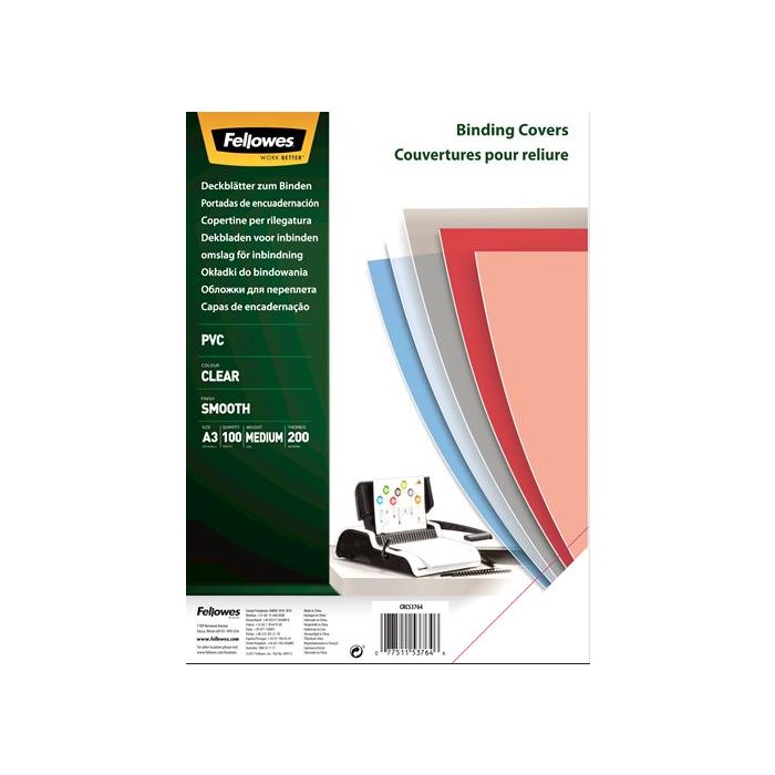 Couverture transparente pour reliure A3 - PVC 0,20 mm FELLOWES Lot de 100