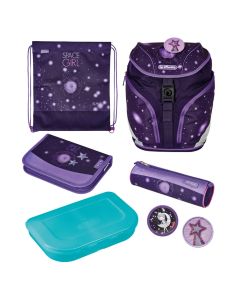 Inclus : Étui d'écolier avec crayons, trousse, écussons, boîte à goûter et sac de sport.